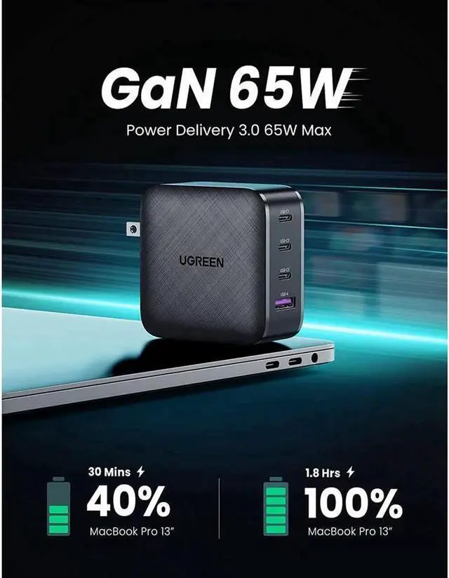 65W Max Output: Fast full Charging for MacBook Pro 13 within 2 hours. (USB C to C cable is required for fast charging, otherwise, the USB charger will not be able to trigger the Power Delivery protocol. )