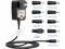 Multi replacement ac adapter- 5.5 x 2.5 mm, 5.5 x 2.1 mm, 4.8 x 1.7 mm, 4.0 x 1.7 mm, 3.5 x 1.35 mm, 3.0 x 1.1 mm, 2.5 x 0.7 mm, and Micro USB plug.