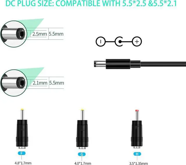plug size: 5.5 * 2.1 mm & 5.5 * 2.5 mm.