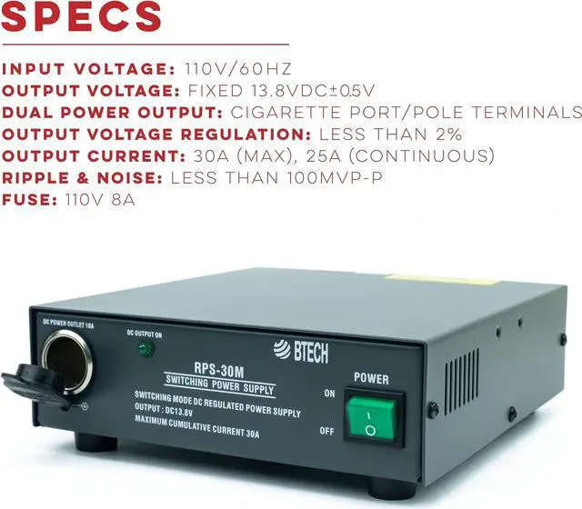 CONVERTS AC TO DC: Reliable 30 Amp power supply for CB, Ham, GMRS, LMR Radios, and all 13.8V DC Devices