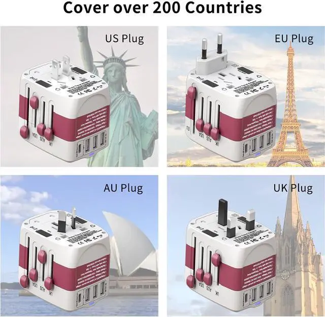 note: this is not a voltage converter, can not be converted to voltageINTERNATIONAL PLUG ADAPTERS -- Adapter covers over 150 countries, with US/EU/UK/AUS plugs and Powerful Four Smart Ports, it can be worked in Canada, Mexico, Brazil, central America, South America, Europe, Asia, the Middle East and so on