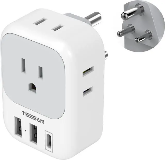 7 in 1 India Plug Adapter: This India adapter can turn 1 India Type D socket into 4 American AC outlets and 3 USB ports; 4-side design can charge 7 devices at a time without blocking, compatible with laptops, camera and more devices