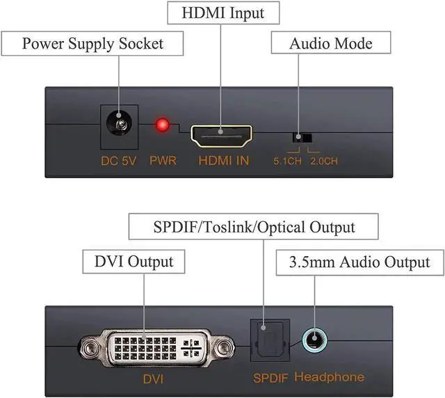 This HDMI to DVI audio converter support to converts HDMI signal ( from PC, Apple TV, Blu-Ray Player, PS4, STB, Network box) to DVI (to display devices with with DVI interface such as TV, Monitor, Projector) and Optical (SPDIF) Audio Output + 3.5mm Stereo Audio Output. It can help users converter high quality HDMI signal to normal DVI signal, so that it can be widely used on TV, projector and monitor, supports DTS/AC3/PCM/LPCM PCM/ETC audio signal in the meantime.