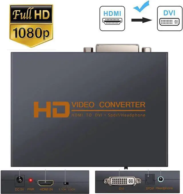 1080p HDMI to DVI Converter HDMI to DVI + Optical Toslink SPDIF + 3.5mm Stereo Audio