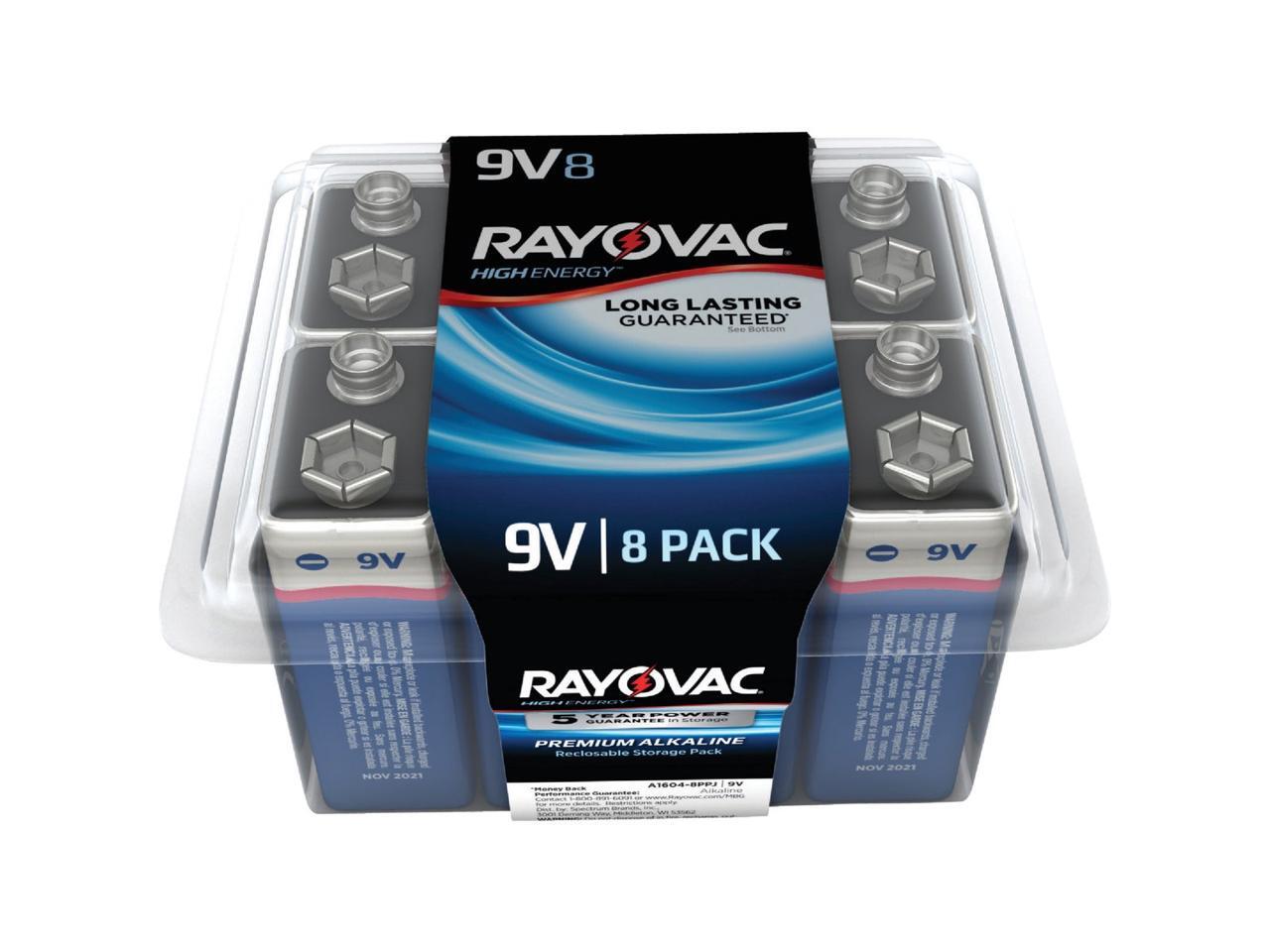 Rayovac High Energy Premium Alkaline Battery 9V 8/Pack A16048PPK