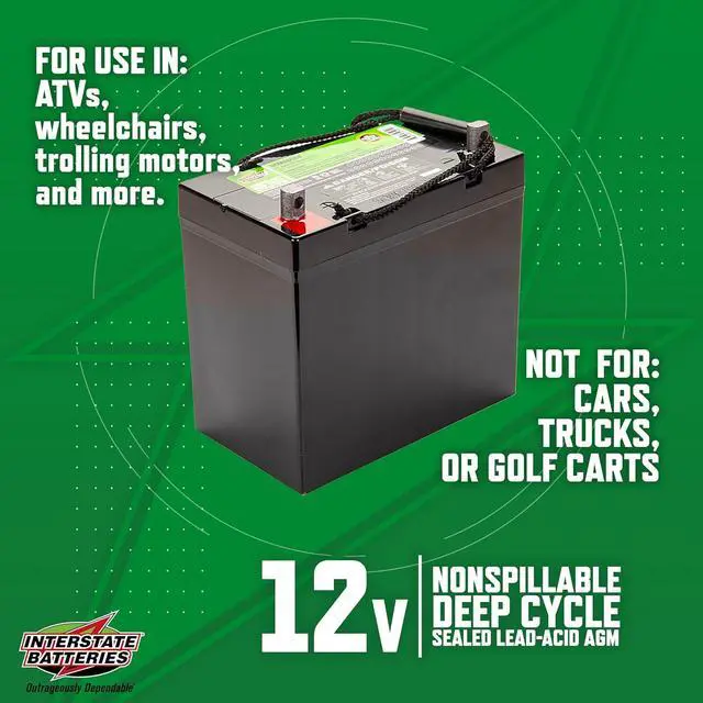 DEEP CYCLE MOBILITY BATTERY: Interstate Batteries DCM0055U professional-grade, high-quality battery developed specifically for ATVs, scooters, wheelchairs, trolling motors and more. Longer life & more cycles for deep discharge usage Interstates DCM batteries rated as the best performer for heavy-demand deep-cycle batteries, making them Outrageously Dependable