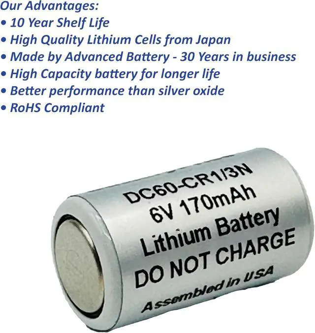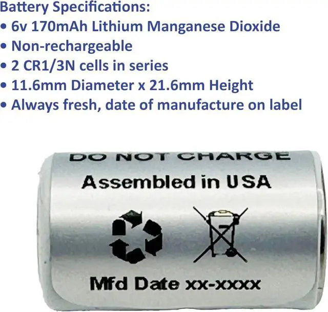 One 6 volt lithium battery for dog shock collars, 11.9 mm diameter x 21.3 mm height. Assembled in USA.