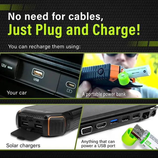 RECHARGE ALMOST ANYWHERE - Plug into laptops, power banks, car USB adapters, wall plugs, or solar chargers with a USB output. This usb battery pack is made for flexible charging wherever you are, so keeping your batteries ready is easier whether at home, in the car, or outdoors.