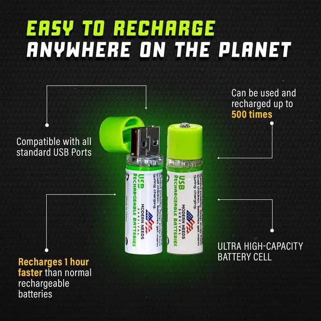 FAST USB CHARGING - Skip the bulky charger and power up with direct USB charging. These USB rechargeable batteries are designed for quick, convenient use at home or on the go, making them a practical usb battery solution for remotes, toys, flashlights, and other everyday devices.