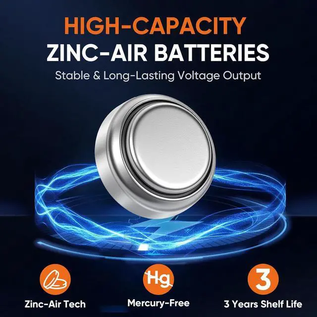 Long-Lasting Performance for Hearing Aid Batteries Size 13 Mercury-free & eco-friendly formula paired with premium zinc-air technology delivers a steady 1.45V voltage, ensuring long-lasting and balanced discharge. It delivers crystal-clear sound and strong power support for size 13 hearing aids, reliable and consistent for daily use.