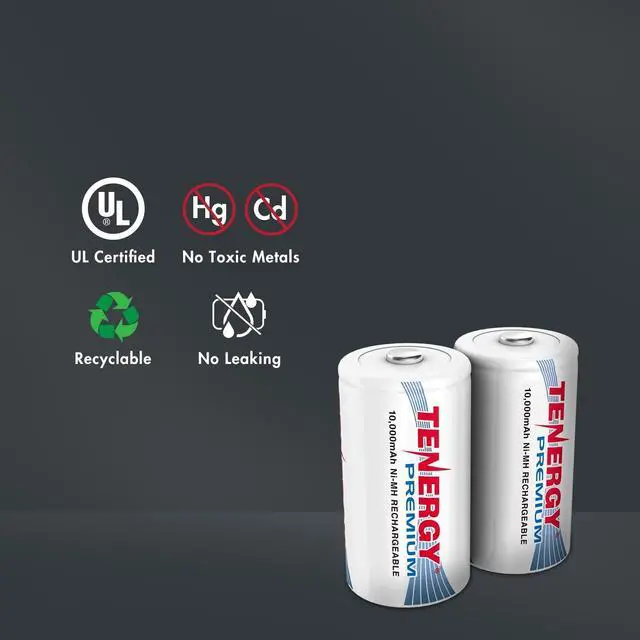 Tenergy Premiums are designed with an advanced no leak design. These rechargeable D size batteries are UL certified for safety and are backed with a 12 month warranty period.
