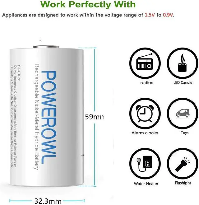 Rechargeable d cell apply to radios LED candle alarm clocks toys water heater flashight and more