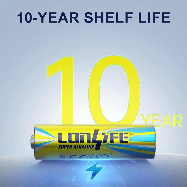 Enhance 10 Year Shelf life With a 10-year shelf life, LONLIFE 1.5V AA alkaline batteries retain full power when stored properly. Keep them cool, dry, and shaded to stock up worry-free and enjoy instant power for years.