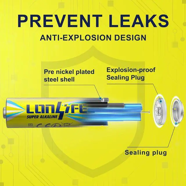 Dual leakproof TechEngineered with two seal protection, LONLIFE batteries aa size pack prevent leaks, eliminating the risk of device damage and safety hazards.