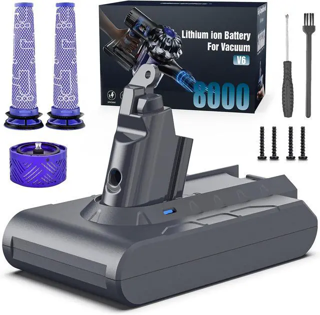 WHAT YOU GET: 1 Battery Replacement for V6, 2 Filters, 1 Post-Filter, 1 Screwdriver, 1 Cleaning Brush, 4 Screw, 1 User Manual. We provide a warranty for our v6 battery 12 months and also provide 24 h 7 Days friendly customer support.
