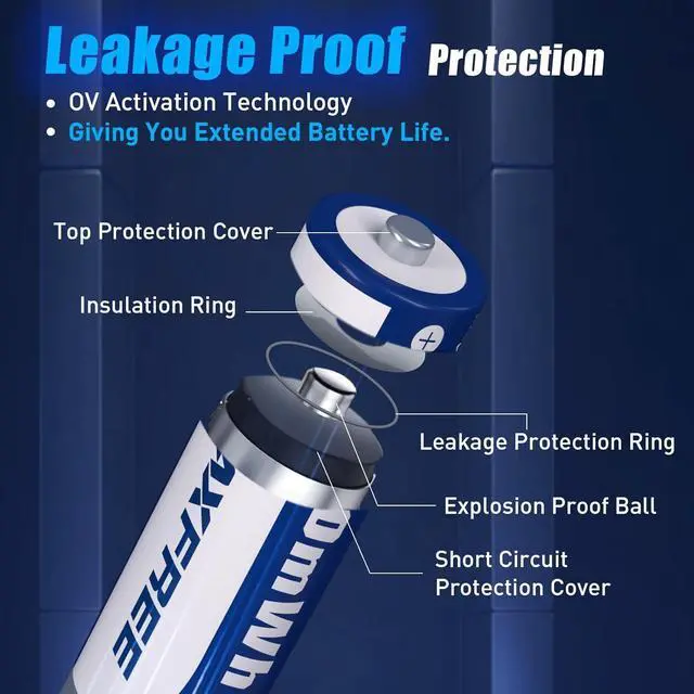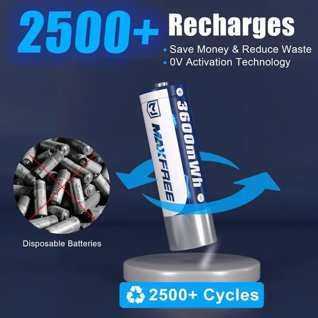 LONG-LASTING PERFORMANCE 2500+ CYCLES & 0V ACTIVATION: Rechargeable aa lithium batteries provide up to 2500+ charge cycles for maximum durability. The 0V Activation technology ensures that even deeply discharged batteries can be safely revived and recharged, giving you extended battery life.