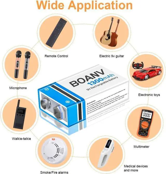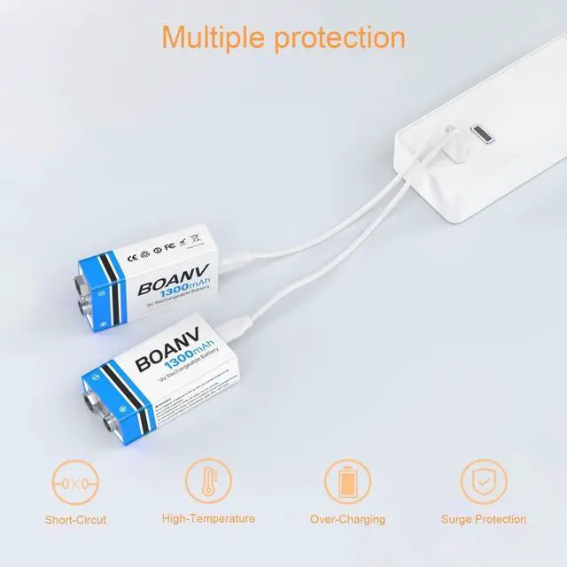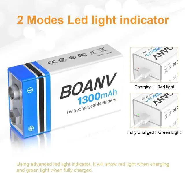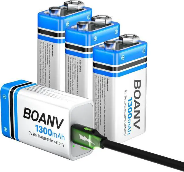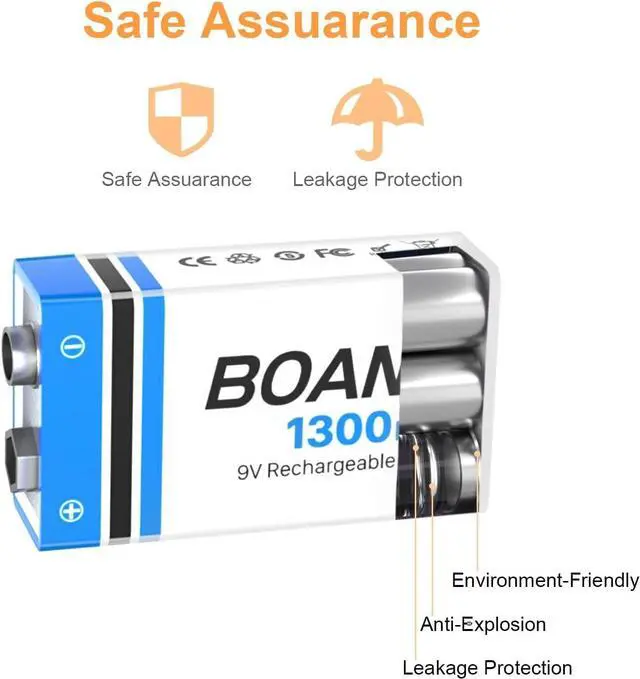 Excellent Performance: 4 PCS 1300mAh high capacity batteries, tested by professional testers according to strict quality control standards, certified by CE and RoHS. BOANV 9V battery has longer battery life and fast charging. Up to 1500 efficient charge cycles.