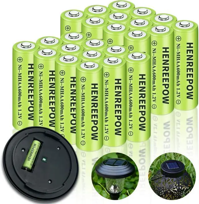 Convenient ChargingHENREEPOW rechargeable NiMH AA batteries can be charged via solar cell lights or standard charging units