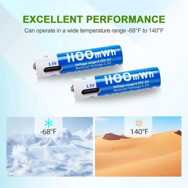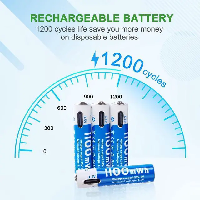 Over 1200 CyclesThe rechargeable AAA lithium-ion battery has 1200+ cycles, no memory effect, can be charged at any time, will help you save big money and save time compared with single-use batteries, which are very convenient and reliable.