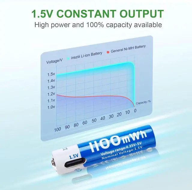 1.5V Constant VoltageINSZIII lithium-ion aaa battery has a capacity of up to 1100mWh with a constant 1.5V voltage, providing more stable power and longer operating time, perfect for devices used at high frequencies, such as toys, keyboards, mouse, remotes, clocks, blood pressure monitors and other household devices.