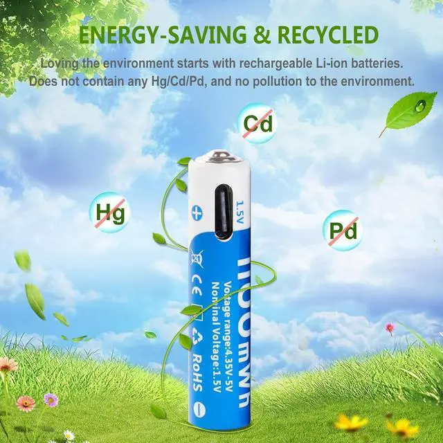 Energy-Saving BatteryLoving the environment starts with rechargeable Li-ion AAA batteries, which save thousands of alkaline batteries and reduce landfill waste.