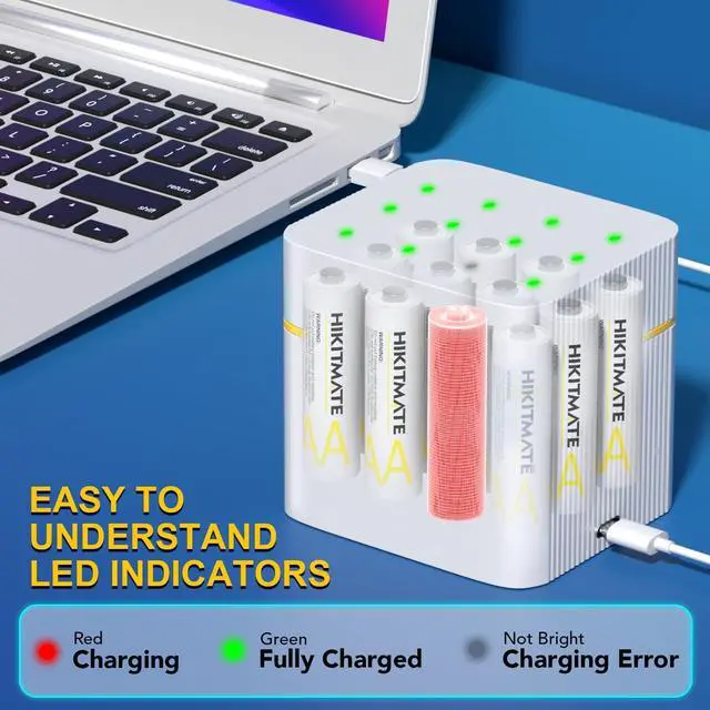 3H Fast Charge with Smart LED IndicatorsFully charge 12 batteries in 3 hours. Each slot' s smart