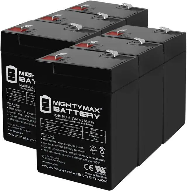 ML4-6 SLA is a 6V 4.5AH Sealed Lead Acid (SLA) rechargeable maintenance free battery, Pack of 6 - UL Certified