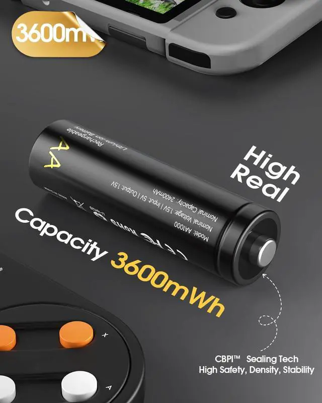 3600mWh Lithium Batteries AA Rechargeable: High and real capacity 3600mWh aa lithium batteries with CPBI technology, maximize space utilization with 96.8 %, you will get 8-pack high safety and stability batteries