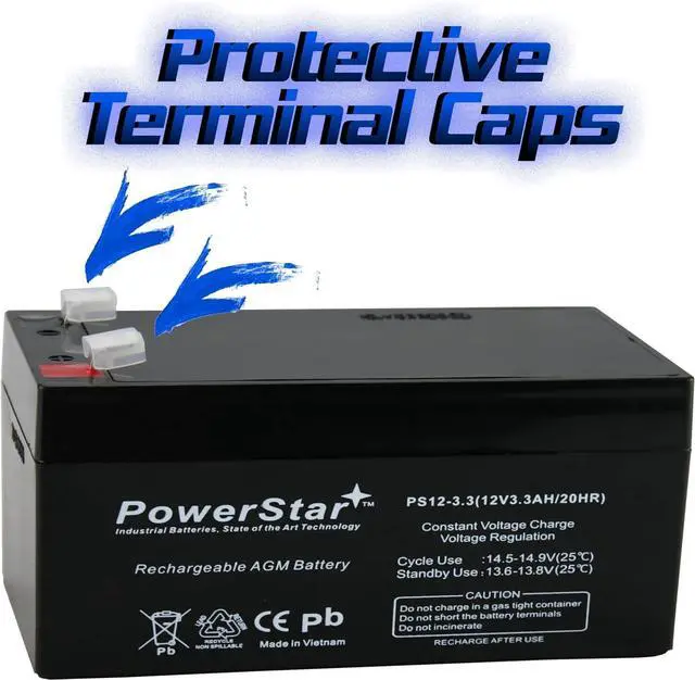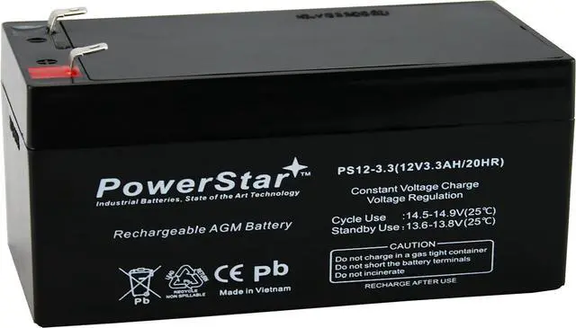 12v 3.3 ah battery L- 5.28 W- 2.64 H- 2.62 T1 Terminal 2.75 lbs, replaces these and more BP3-12 BP 3.6 -12 CF12V 2.6 CFM12V3 CP1232