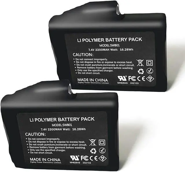 2pcs Rechargeable Li-ion Batteries Included Charge it with Sun Will chargers only, and Remove battery from heated gloves or socks during charging.