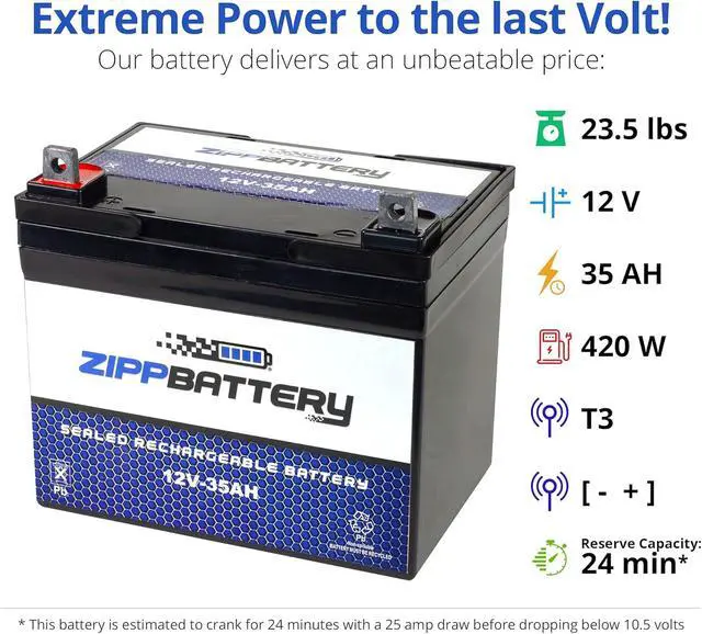U. S. Based; Top technology; featuring state-of-the-art Absorbed Glass Mat (AGM) technology; Zipp batteries deliver spill-proof, low-maintenance power, with sealed posts ensuring prolonged durability