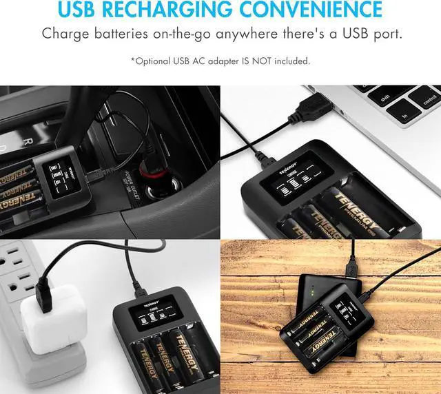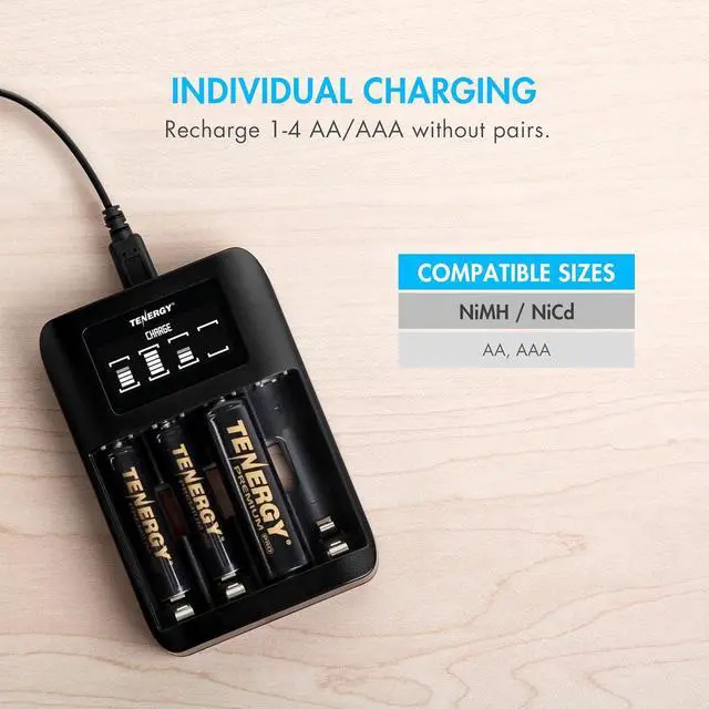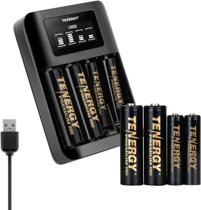Recharge, reuse, and generate savings with Tenergy' s Premium Pro 4 pack AA, 4 pack AAA, and TN474U charger bundle.