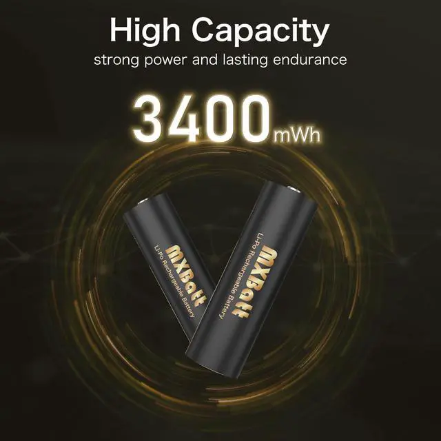 High Capacity 3400mWh: Rechargeable AA Lithium batteries with 3400mWh high capacity, provide reliable and lasting service for high power consumption devices, including game consoles, toysect