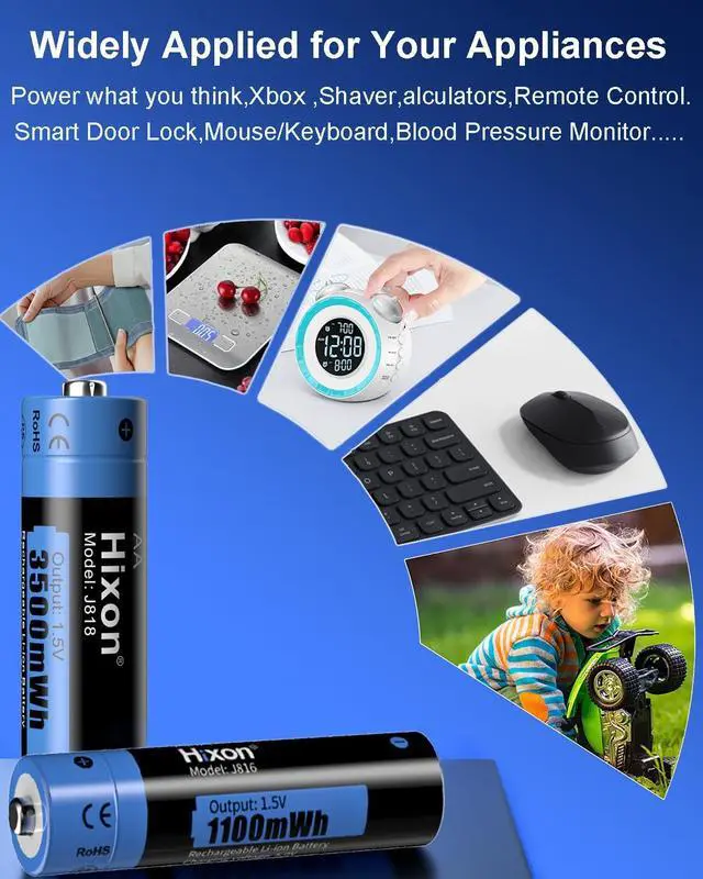 Great for High Power Devices: Hixon rechargeable lithium aaa ideal for high power consumption devices, such as Shaver, Mouse, alculators, Keypoard, Remote Control, Electronic Scale, Radio, Alarm Clock, Blood Pressure Monitor and so on. Hixon aa batteries ideal for Xbox Gamepad, Quest VR Grip, Doorbell, Camera, Flash, Door Lock, Microphone, Radio, Children' s Toys, Scale, Blood Pressure Monitor and so on. (Also Suitable for blink camera, excluding the 4 Gen )