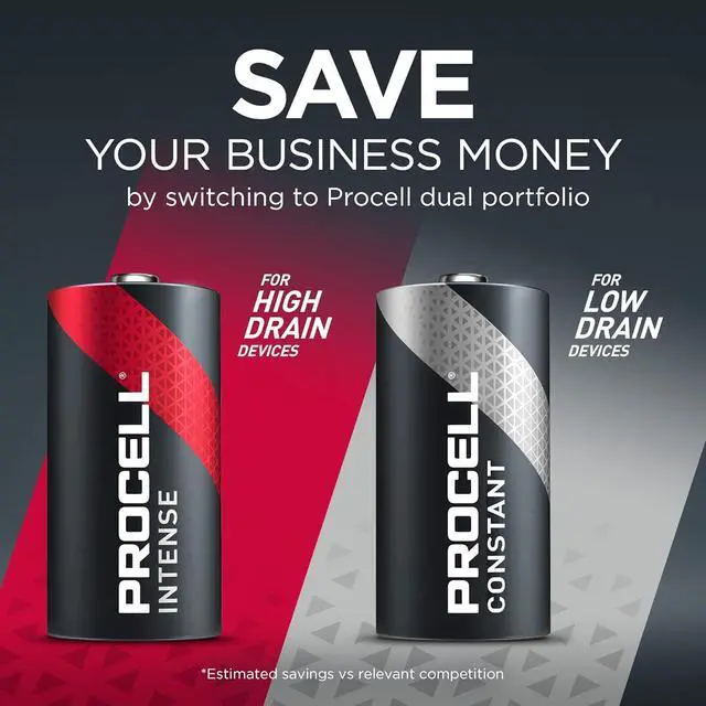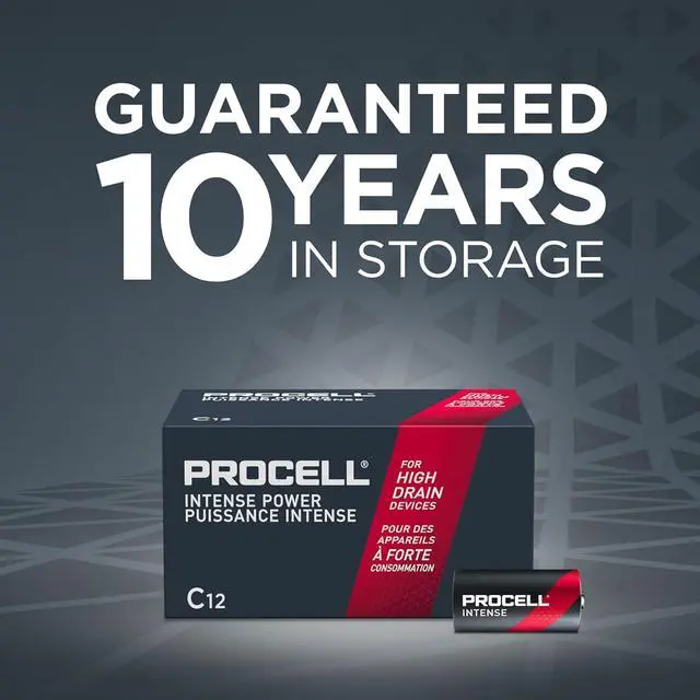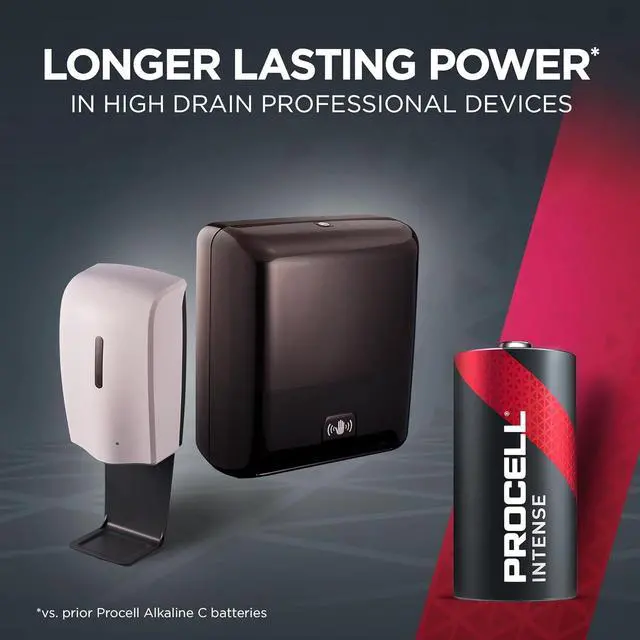 LONG LASTING POWER C 1.5 -volt batteries deliver longer lasting power vs. prior Procell Alkaline C batteries; Procell Intense batteries are formulated for high drain devices like paper towel dispensers, soap dispensers, automatic odorizers, flashlights, and more