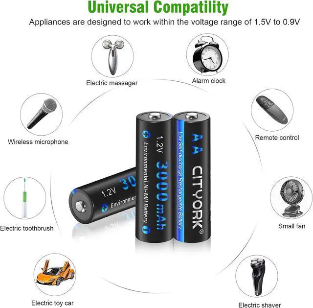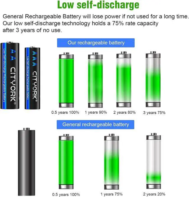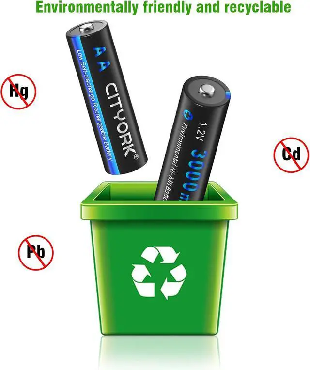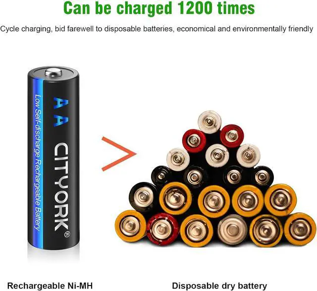 Charge up to 1200 times: CITYORK AA batteries can be up to 1200 times, save money and reduce waste effectively