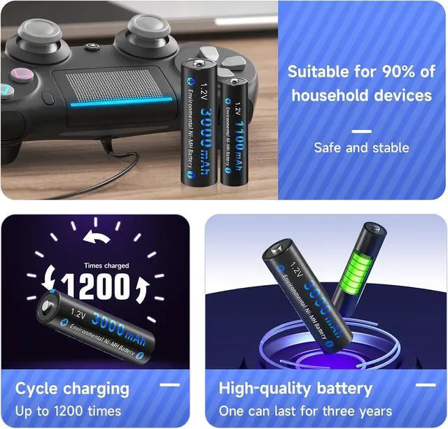 Widely used: works perfect for solar-powered garden light, toys, TV remote controls, flashlights, wireless mice, portable audio players, game controllers, smart home devices, digital cameras and other AAA battery devices