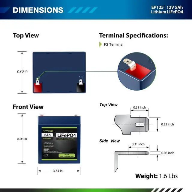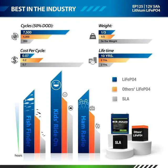 ExpertPower 12V 5Ah Lithium LiFePO4 Deep Cycle Rechargeable Battery | 2500-7000 Life Cycles & 10-Year Lifetime | Built-in BMS | Perfect for RV, Solar, Marine, Overland, Off-Grid Applications