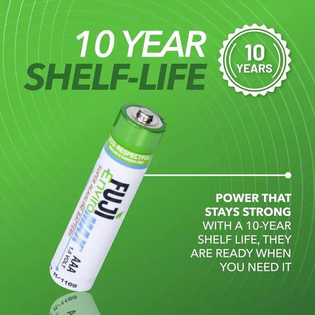 1.5V 10-Year shelf life With date-coded Packaging Designed for digital & High-drain devices like digital cameras, handheld games, CD players, MP3 players, PDAs, headphones, remotes, etc. Mercury-, cadmium- & PVC-free 48 Pike