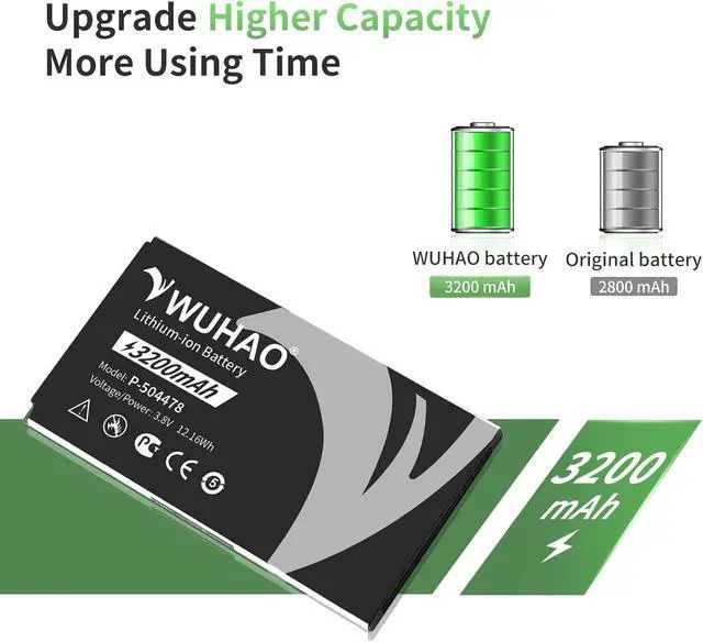 Higher Capacity 3200mAhfor P-504478 Li-ion Rechargeable Battery capacity: 3200mAh. Greater capability with stronger energy power, ideal replacement for your device' s original batteries.