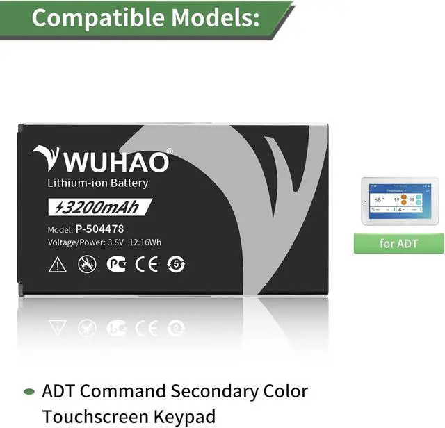 Quality Assurance All items were thoroughly tested and packed before shipping. Brand new and high quality. Perfect for ADT Command Secondary Color Touchscreen Keypad replacement battery.