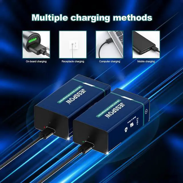USB Rechargeable Batteries: Built in type c charging port and adopt advanced charging technology, No need to use additional chargers. when you charge for the 9v batteries, LED indicator will tell you the status of battery. (Red means it is charging, green means the battery is full. )