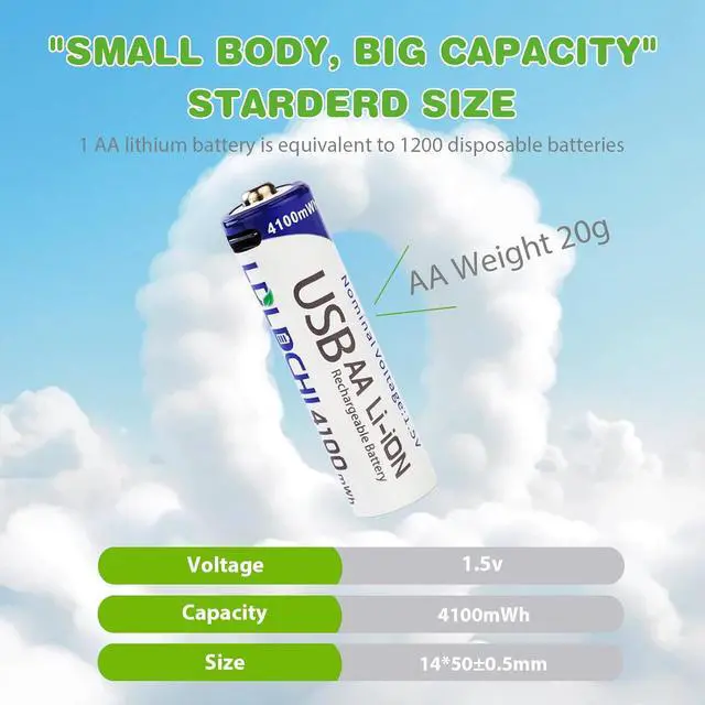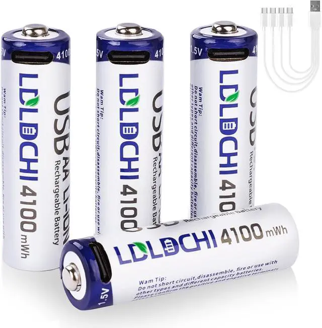 Easy to Charge LDLDCHI package contains a 4-in-1 USB-C charging cable, which supports 4 lithium AA batteries to be fully charged within 2 hours at the same time, without an additional battery charger. The charging cable can be plugged into any USB power supply, such as an adapter, USB plug-in, laptop, or car charger. (The LED indicator on the battery flashes green during charging and stays green when the battery is fully charged. )