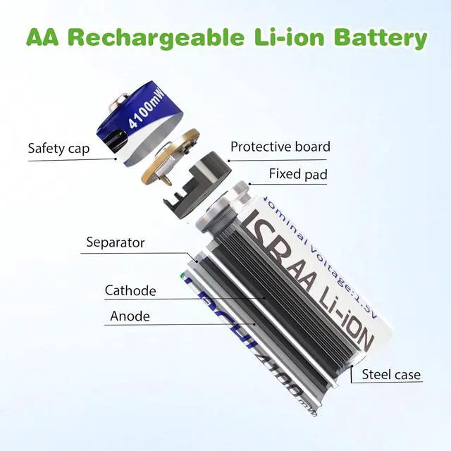 Multiple Protection These 1.5V rechargeable AA batteries have built-in intelligent safety chips to protect the batteries from explosion. It has the functions of overcharge, over-discharge, overcurrent, overvoltage, and short circuit protection. Every LDLDCHI battery has been tested many times to ensure the safety of use.