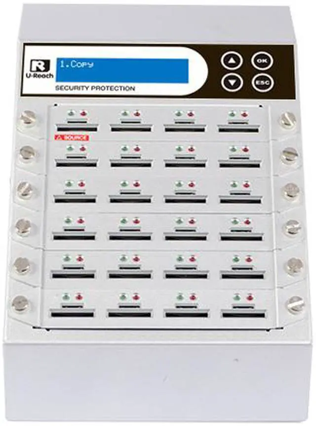 The U-Reach "Intelligent 9 series "dual port SD/Micro SD card duplicator is a cost effective and flexible solution effectively combing two duplicators into one. Standalone with no PC required this newly designed compact desk top machine also offers the end user the opportunity to replace any damaged or worn ports without the need to return to the factory.