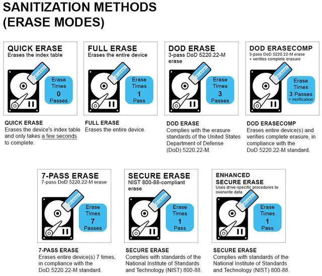 Complies with standards of the National Institute of Standards and Technology (NIST) 800-88.