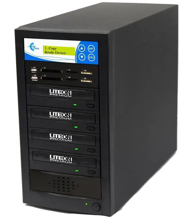 This EZ Dupe Media Mirror Plus Three drives and one media slot backup system is designed to transfer data from virtually any memory card and USB device to CD or DVD.