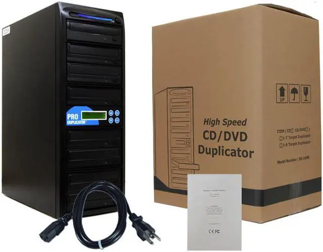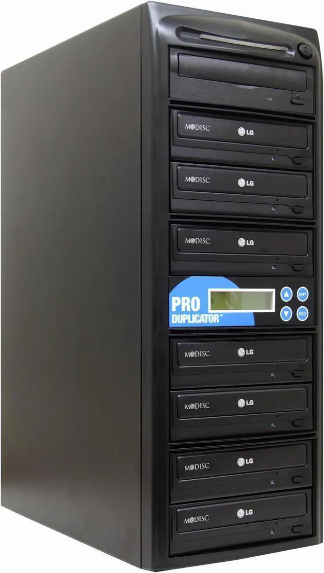 The CD DVD Duplicator offers optical disc burning technology suitable for anyone involved in disc duplication. The user-friendly LCD interface provides a simple one-step copy function that burns your CD and DVD blank discs at an optimal speed producing a maximum copies every burn cycle. Burning speeds are adjustable and other standard menu features are available for advanced users. A computer is not required at all for this standalone duplication system. All inside the copy tower itself, different CD and DVD formats are automatically detected to allow stable and secure buffer under run protected burning without the added trouble or stress from a computer to handle such functions.