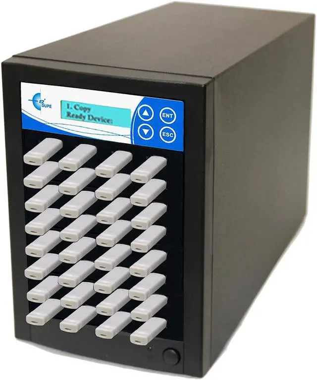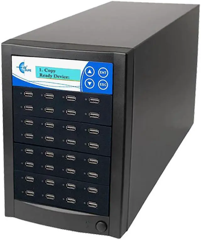 EZ Dupe USB flash media memory card duplicator features user friendly 4-key control panel with LCD, high speed duplication and bit-by-bit Compare function to confirm successful copies.