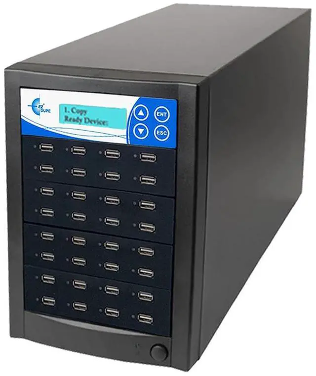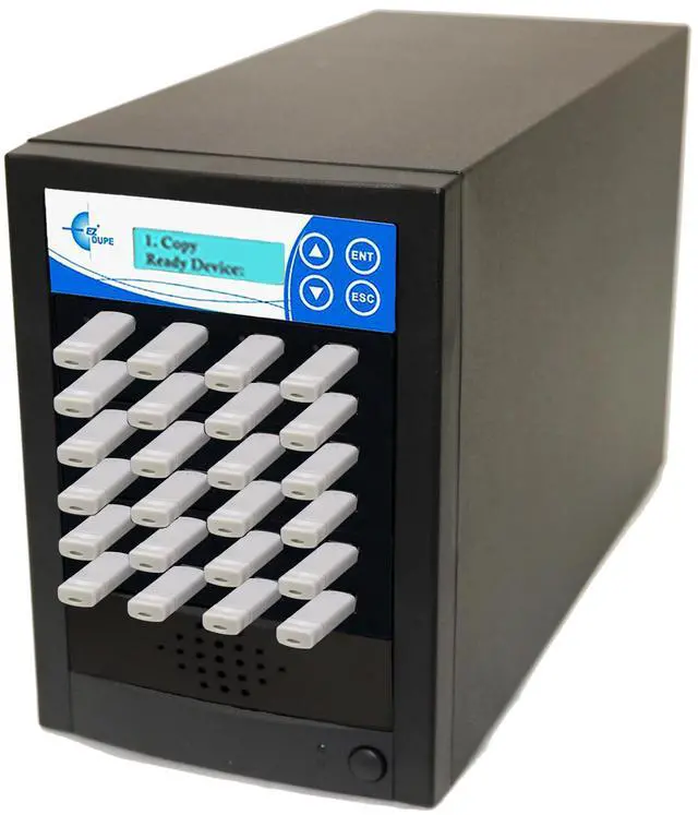 EZ Dupe USB flash media memory card duplicator features user friendly 4-key control panel with LCD, high speed duplication and bit-by-bit Compare function to confirm successful copies.